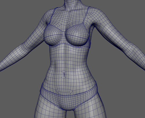 Shoulders, hips, and face loops placed with rigging and deformation in mind.